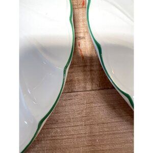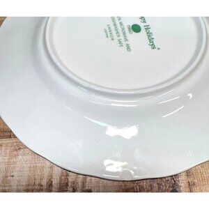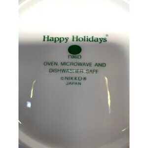 The Nikko Happy Holidays Bread & Butter Plates offer a festive touch to your dining experience. Each plate features a charming Christmas tree design, adding a seasonal flair. Made in Japan, these plates are not only visually appealing but also practical, being oven, microwave, and dishwasher safe. 7'', 1plate chiped on back, see pic