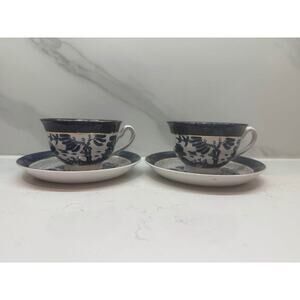 Pair of Nikko Ironstone Double Phoenix Blue Willow Occupied Japan Cups and Saucers