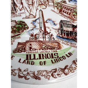 Nikko Ironstone Vintage Illinois State Plate Land of Lincoln 11- inch White