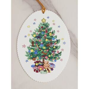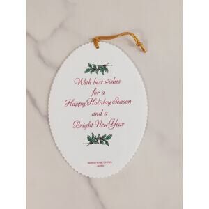 Nikko Ornament Fine China 5" Christmas Scalloped Hanging Tree Japan x2 Vintage