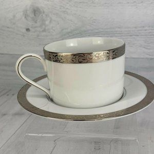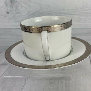 Nikko PLATINUM FILIGREE White Cup Saucer Set