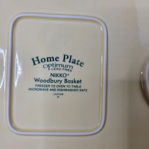 Beautiful ivory colored hostess tray with a basket weave pattern with 2 small circular side serving compartments and a single rectangular serving compartment in the center!