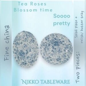 Nikko tableware home dining plate plates blue white floral 9" relish / butter tray ( or small oval serving platter if you will ) and 7-3/4" round salad plate