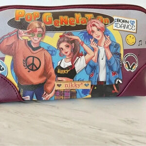 New, Nikky By Nicole Lee Large Oval Makeup Pouch Cosmetic Bag Pop Generation color Gray and burgundy