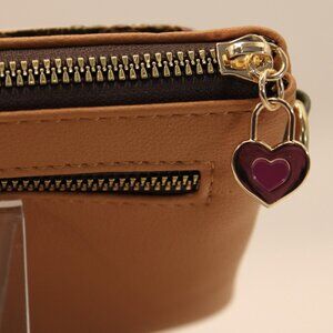 Adorable Nikky by Nicole Lee clutch that converts to a crossbody. Features the signature illustrated front panel, heart-lock zipper pulls and gold-tone hardware. Still new with tags and protective film on the logo snap.