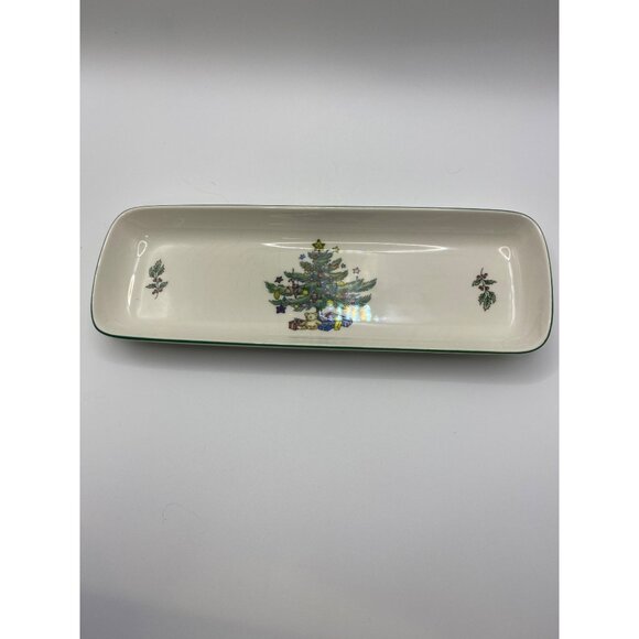 Niko Japan Christmas Tree Rectangular Tray With Holly & Tree Design Ceramic