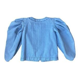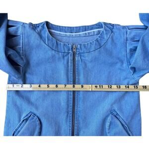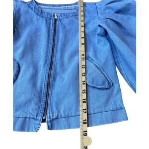 Nikolia Kids Puff Sleeve Denim Bomber Jacket Light Blue Cotton Zip - 9-10 Years