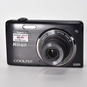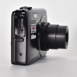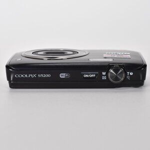 The Wi-Fi enabled Nikon COOLPIX S5200 Digital Camera is equipped with a 16MP CMOS low-light image sensor and a wide angle 6x optical zoom NIKKOR glass lens with a 26-156mm (35mm equivalent) focal length and an f/3.5-6.5 aperture. The camera features optical VR image stabilization, Full HD 1080p video capture with stereo sound and an integrated 3" LCD monitor that helps you with framing and playback.