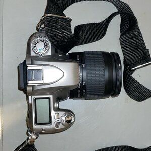 Capture life's moments with the classic preowned Nikon CR2x2 Film Camera, perfect for both enthusiasts and seasoned photographers. This robust camera comes in a sleek silver finish, designed for durability and style. The camera features manual and automatic settings, offering you full control over your photography. With its comfortable black strap, this camera provides convenience and ease of use during extended shooting sessions. The Nikon CR2x2 also includes a built-in flash for low light situations and a versatile zoom lens to get the perfect shot, whether near or far. Embrace the art of film photography with this timeless piece of equipment, and create memories that will last a lifetime. Film included with purchase to get you started on your photographic journey.