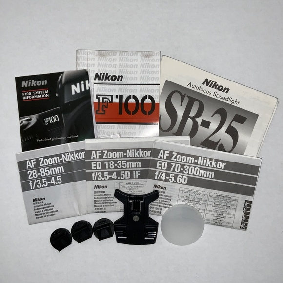 Nikon owner’s manuals, system information pamphlets & parts. Parts appear unused and manuals have some wear (see photos.). Just to be clear, this listing is JUST for the manuals and parts. Owners manuals always up the selling price so get these before they’re gone! In my closet, I also have a Nikon F100 Type E & F-801S focusing screens, Nikon lens hoods, Nikon accessories, Canon G9 camera set with lenses, adapters, Canon SpeedLite 580EX II flash, Minolta lenses, flash, etc. plus more! Comes from a smoke-free & pet-free home. Thanks for looking! Questions? Leave a comment below!
