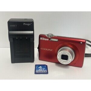 Nikon Coolpix S205 12MP Digital Camera w/ SD Memory Card Charger TESTED WORKS