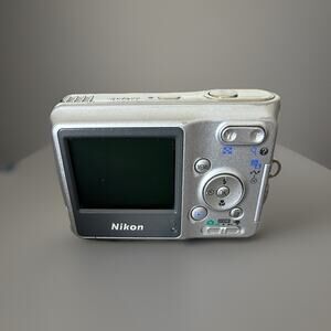 The Nikon Digital Coolpix L3 is a compact digital camera from the Nikon COOLPIX series. It features a 3x optical zoom and 3x digital zoom, allowing for versatile shooting capabilities. The camera has a sleek silver design and a 1.25” screen size, making it easy to view and navigate through your photos. With a lightweight design at 4.3oz and the ability to use AA batteries, this camera is convenient for on-the-go shooting without the need for a charger. Ideal for capturing moments with ease and simplicity.
