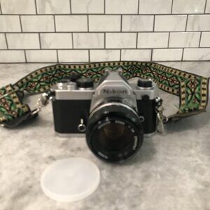 Nikon FM silver 35mm SLR Film Camera Ai Nikkor 50mm f1.4 lens Japan with Strap