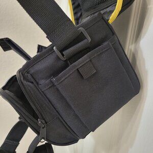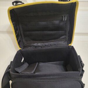 This Nikon Black Yellow Line padded DSLR Camera Case/Gadget Bag Carry Shoulder Bag is the perfect accessory for your camera. It is compatible with Nikon D3200 and other models, and is made of durable nylon material. The bag comes with a shoulder strap and can be adjusted to fit your needs.