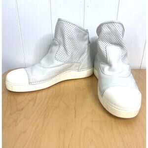 Nila & Nila Made in Italy Dove Gray Leather Perforated Back Zip Sneaker/Boot EU 40