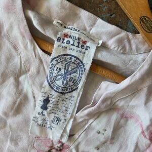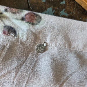 Nile Atelier Piece Par Peice bell sleeve Y2K style fairy top in light pink with floral accents. 100% viscose. Size XS. In gently preowned condition, no flaws noted.