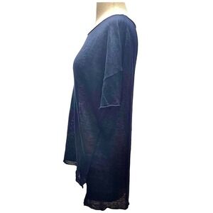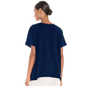 Nili Lotan 100% Linen Oversized Navy Blue Short Sleeve T-Shirt Sweater X-Small
