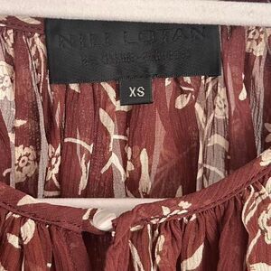 Elegant and free-spirited, this Nili Lotan Saint-Tropez blouse is crafted from 100% silk in a soft tan floral print. Features billowy boho sleeves, a delicate front button keyhole, and a sheer, flowy silhouette that moves beautifully. Perfect for Thanksgiving dinners or dreamy fall days. Pre-owned, great condition.