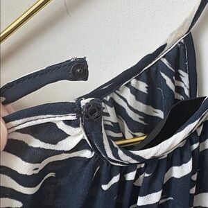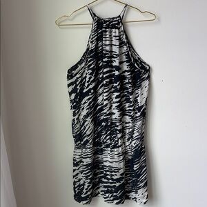 Nili Lotan 100% Silk Halter Mini Dress Navy White Elastic Waist Semi Sheer Size