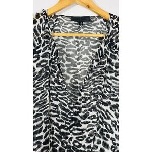 Nili Lotan 100% Silk Leopard Print Semi-Sheer Popover Blouse Top Tie Medium