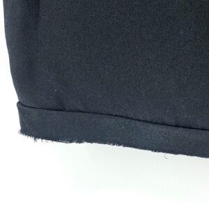 Unique hem - rolled and sewn with an unfinished raw edge.
