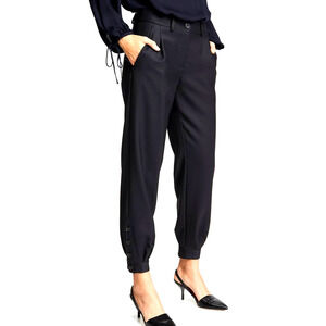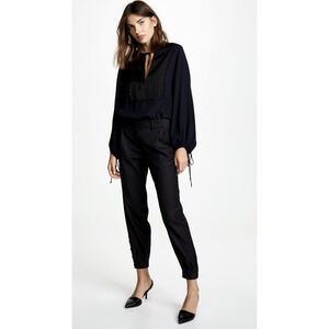Nili Lotan 2 Bertina Slouchy Black Silky Pants Pleats High Rise Ankle Buttons
