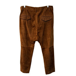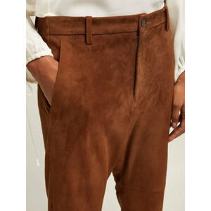Nili Lotan 8 Goatskin Suede Paris Pants Drop Crotch Slouchy Leather Cognac Brown