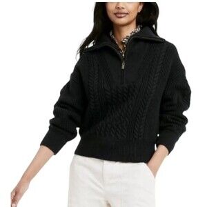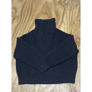 Nili Lotan Cable Knit Chunky Sweater Women XL Quarter Zip Black @L1 Preowned////