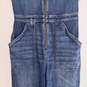 Nili Lotan Cannes Denim Jumpsuit Womens 4 Zip Front Workwear Utility Dark Blue