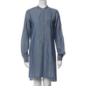 Nili Lotan Chambray Tunic Beach Dress Size Small. Long sleeves. Slim fit. Button placket. Straight skirt. Chest pocket. Side Slits. Falls to midthigh. 100% Cotton. Lightweight. Semi-sheer. Small flaw on left slit.