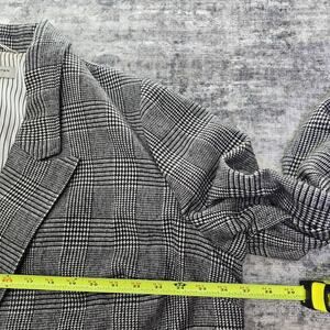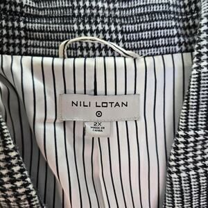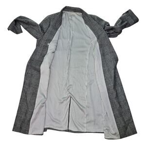 Nili Lotan Coat Womens 2X Gray Black Plaid Double Breasted Wool Blend Long Lined