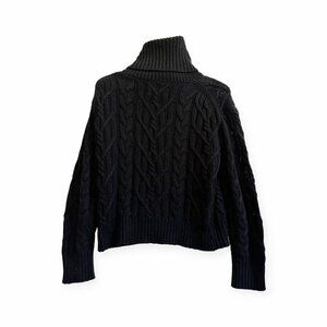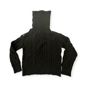Nili Lotan Cowl Neck Sweater, Cable Knit, Wool, Cashmere blend, Size XS, Black