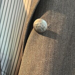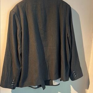 Stylish dark gray double-breasted blazer with a classic design. Perfect for formal occasions.