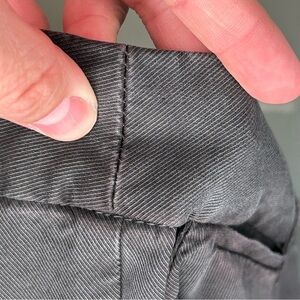 Good used condition despite the inner button being a bit loose and a tiny snag. The discoloration/marks appear to be intentional. Please review photos