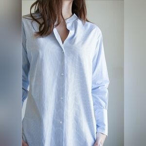 The Nili Lotan Faye Shirt. With its masculine theme, tailored fit, the Faye cotton shirt features a Mandarin collar & French cuffs. 100% cotton.