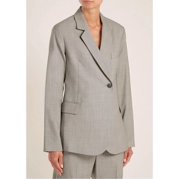 Nili Lotan Gray Classon Sharkskin Single Breasted Wool Jacket Blazer Sz 6