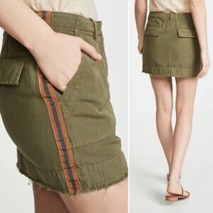 Nili Lotan Ilana Mini Skirt Camo Olive Green Grosgrain Tape Size 4
