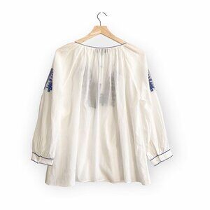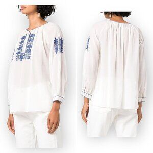 Nili Lotan Ivory Blouse with Navy Embroidery