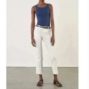 Nili Lotan Jenna Pant Eggshell White Cotton Crop Raw Hem Trouser Pants Size 10
