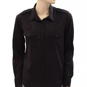 Nili Lotan Jora Tunic Shirt Top Cotton Long Sleeve Buttondown Black L NEW 283766