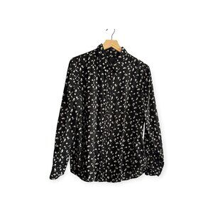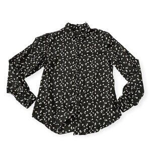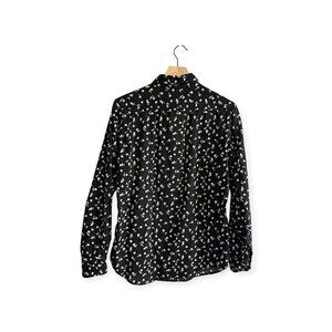 Nili Lotan Libby Floral-print Button-down Shirt In Ivory/black Floral, Size L
