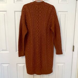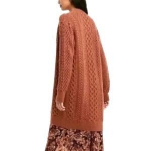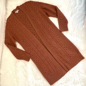 Nili Lotan Long Rust Pumpkin Cable Knit Wool Blend Open Front Cardigan
