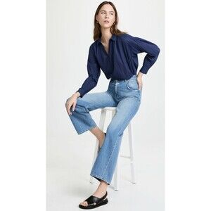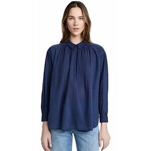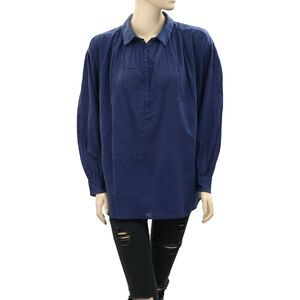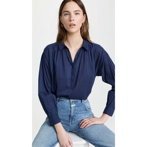 Nili Lotan Miles Tunic Shirt Top Solid Cotton Oversized Blue Collared XS 230543