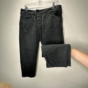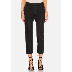 Nili Lotan Muted Black Drop Crotch Button Front Cropped Denim Jeans Size 6