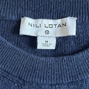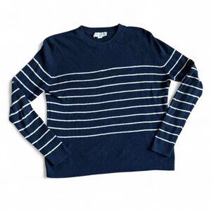 Nili Lotan Navy Breton Stripe Cotton Cashmere Blend Sweater Size Medium