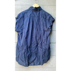 Marine blue cotton shirt in size Small (loose style) with a 25" bust (flat) and approx. 27" (shorter) to 28" (longer) length.