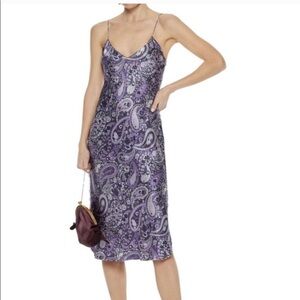 Nili Lotan Purple Paisley Silk Slip Dress Large