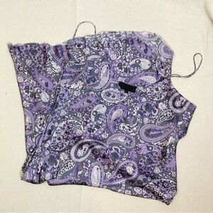 Purple and grey paisley silk slip dress with raw edge hem - size large - in like new condition - adjustable shoulder straps