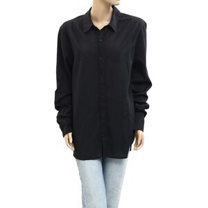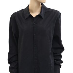 Nili Lotan Raphael Classic Shirt Tunic Top Long Sleeve Black Cotton XL 281154