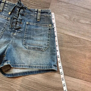 Nili Lotan Romance Lace Up Denim Jean Shorts Faded Wash Size 25